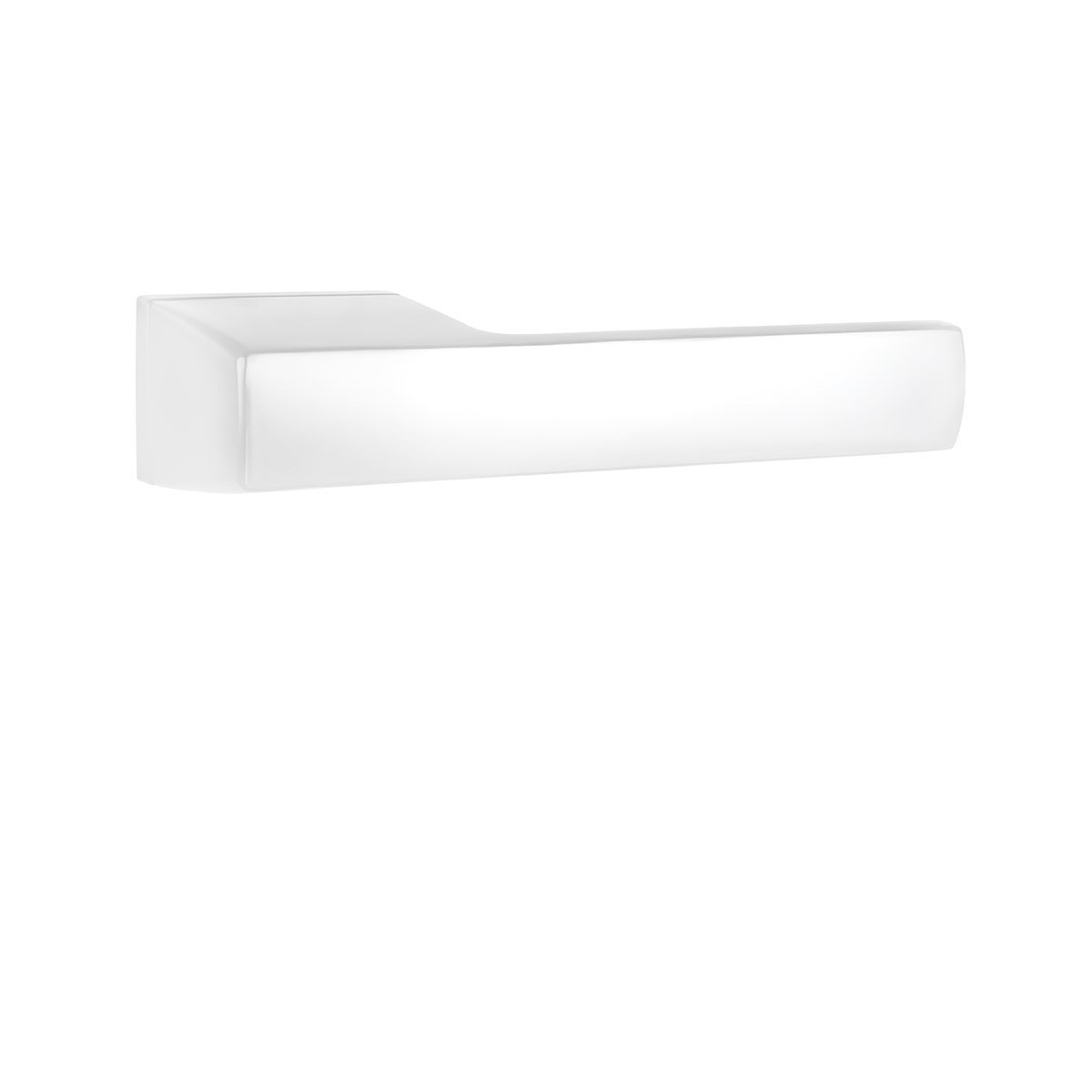 Elegantní obdélníková klika na interiérové ​​dveře je vyrobena z hliníku a rozeta z odolného zamaku. Klika vyniká mimořádně nízkou hmotností a robustní konstrukcí, a proto je manipulace s ní pohodlná i při každodenním používání. Precizní zaoblené hrany rukojeti zajišťují, že její jednoduchý hranatý tvar skvěle padne do ruky. Rozeta s kovovými montážními výstupky je navržena tak, že nepřesahuje obrys kliky.