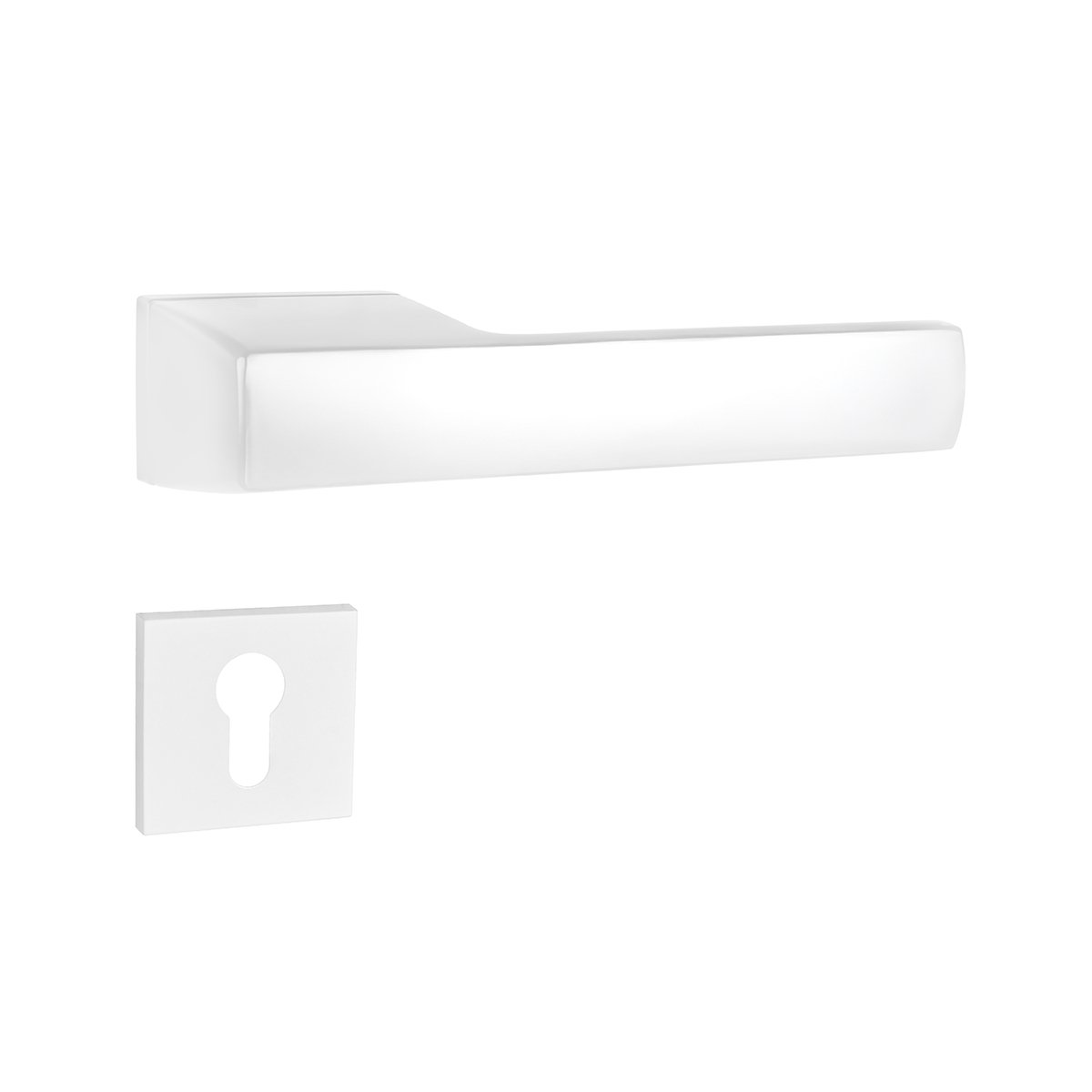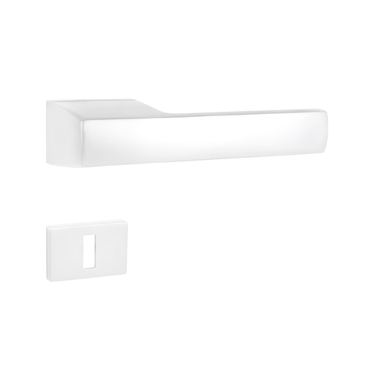 Elegantní obdélníková klika na interiérové ​​dveře je vyrobena z hliníku a rozeta z odolného zamaku. Klika vyniká mimořádně nízkou hmotností a robustní konstrukcí, a proto je manipulace s ní pohodlná i při každodenním používání. Precizní zaoblené hrany rukojeti zajišťují, že její jednoduchý hranatý tvar skvěle padne do ruky. Rozeta s kovovými montážními výstupky je navržena tak, že nepřesahuje obrys kliky.