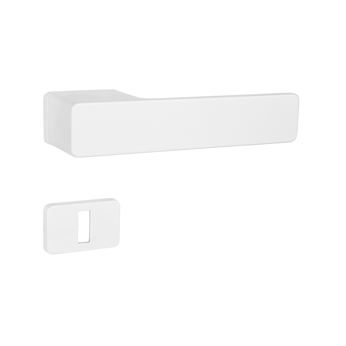 MPK – GRANDERA – RT je rozetová klika na interiérové dveře s elegantní obdélníkovou rozetou a je vyrobena z kvalitního zamaku. Rozeta je plně integrována do designu kliky, což podtrhuje její moderní vzhled.