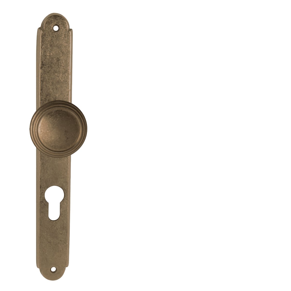 Dveřní pevná přímá koule na rustikálním štítě je vyrobena z materiálů vysoké kvality - mosaz a je povrchově upravena.