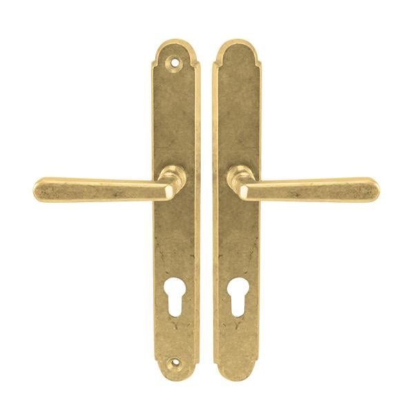Štítová klika na vchodové a bezpečnostní dveře se zpevněným rustikálním štítem bez překrytí cylindrické vložky je vyrobena z materiálů vysoké kvality - mosaz a je povrchově upravena. Rustikální štít má rozměry 38 mm x 280 mm a tloušťku 11 mm.