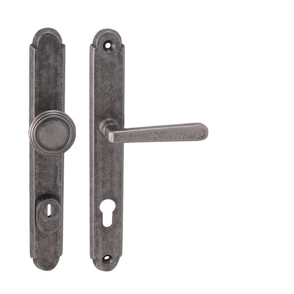 Štítová klika na vchodové a bezpečnostní dveře se zpevněným rustikálním štítem s překrytím cylindrické vložky je vyrobena z materiálů vysoké kvality - mosaz a je povrchově upravena. Rustikální štít má rozměry 38 mm x 280 mm a tloušťku 11 mm.