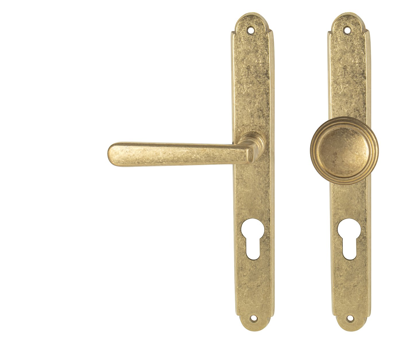 Štítová klika na interiérové dveře s rustikálním štítem je vyrobena z materiálů vysoké kvality - mosaz a je povrchově upravena. Rustikální štít má rozměry 32 mm x 255 mm a klika obsahuje vratný mechanismus.