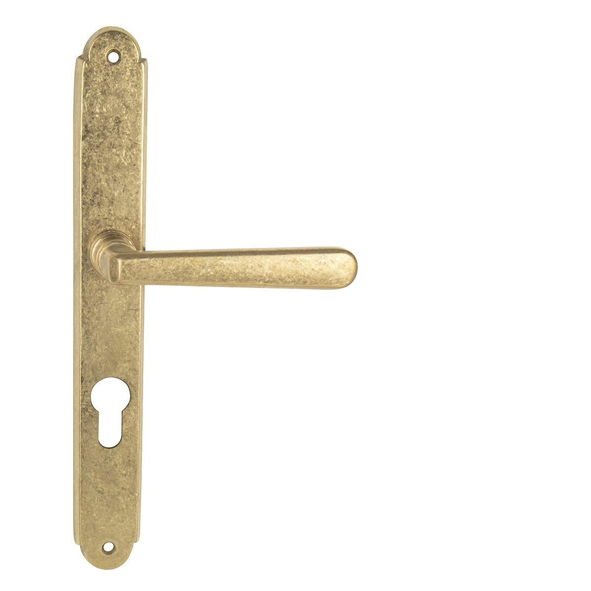 Štítová klika na interiérové dveře s rustikálním štítem je vyrobena z materiálů vysoké kvality - mosaz a je povrchově upravena. Rustikální štít má rozměry 32 mm x 255 mm a klika obsahuje vratný mechanismus.