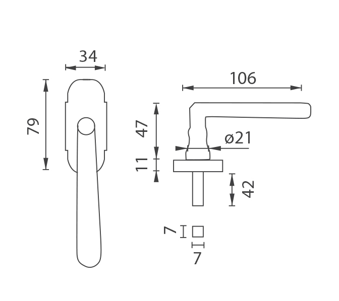 Rozeta má rozměry 34 mm x 79 mm a tloušťku 11 mm.