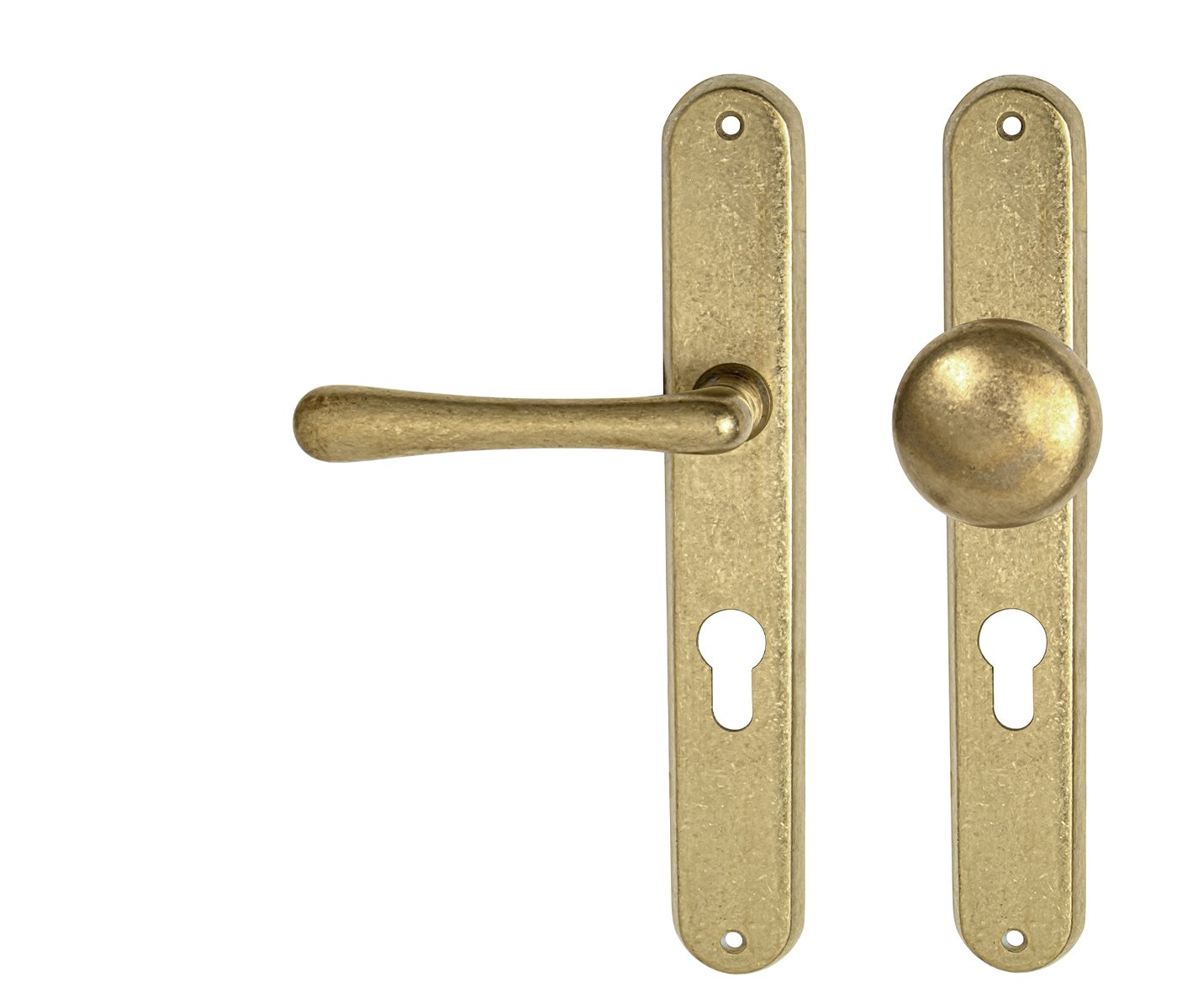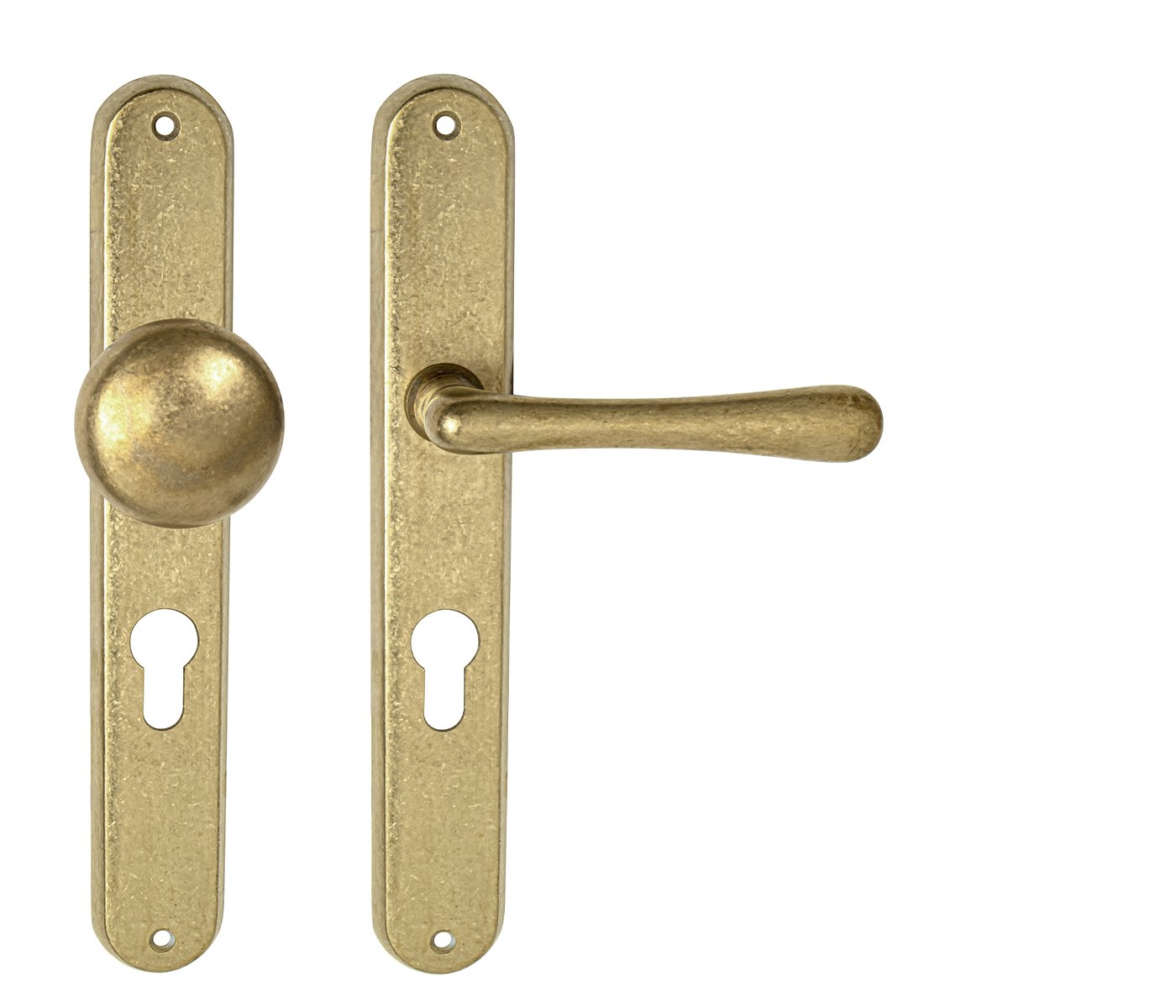 Štítová klika na interiérové ​​dveře s oválným štítem je vyrobena z materiálů vysoké kvality - mosaz a je povrchově upravena. Oválný štít má rozměry 37 mm x 240 mm a klika obsahuje vratný mechanismus.