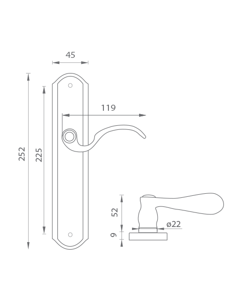 Při objednávání štítových klik je třeba znát vzdálenost mezi osou kliky a osou klíče (rozteč). Standardní vzdálenost je 72 nebo 90 mm. Rovněž i otvory do štítových klik jsou ražené na míru, a proto vás prosíme o uvedení nejen správné rozteče, ale i typu otvorů. V opačném případě výměna klik nemusí být samozřejmostí.