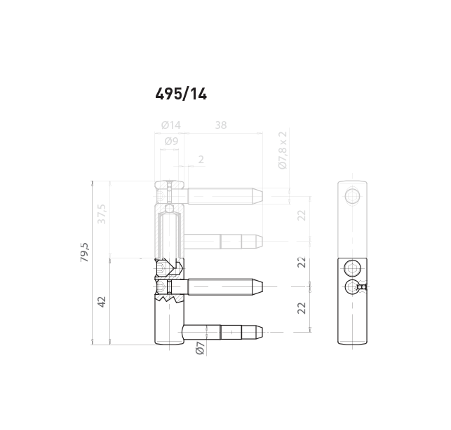 Horní - křídlová část s 2 kolíky, nastavitelná, s nylónovou objímkou.
