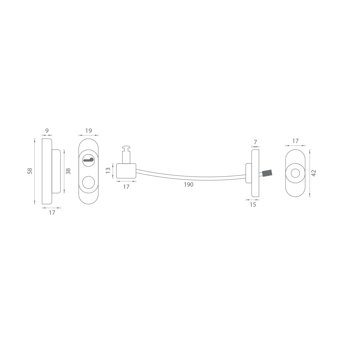 Zámek je vyroben ze slitiny zinku, ocelové lanko z nerezavějící oceli a je odolné do maximální síly 550 kg a nelze jej přeřezat běžnými nástroji. Lanko se standardní délkou 20 cm poskytuje bezpečné otevření okna 10 - 15 cm.