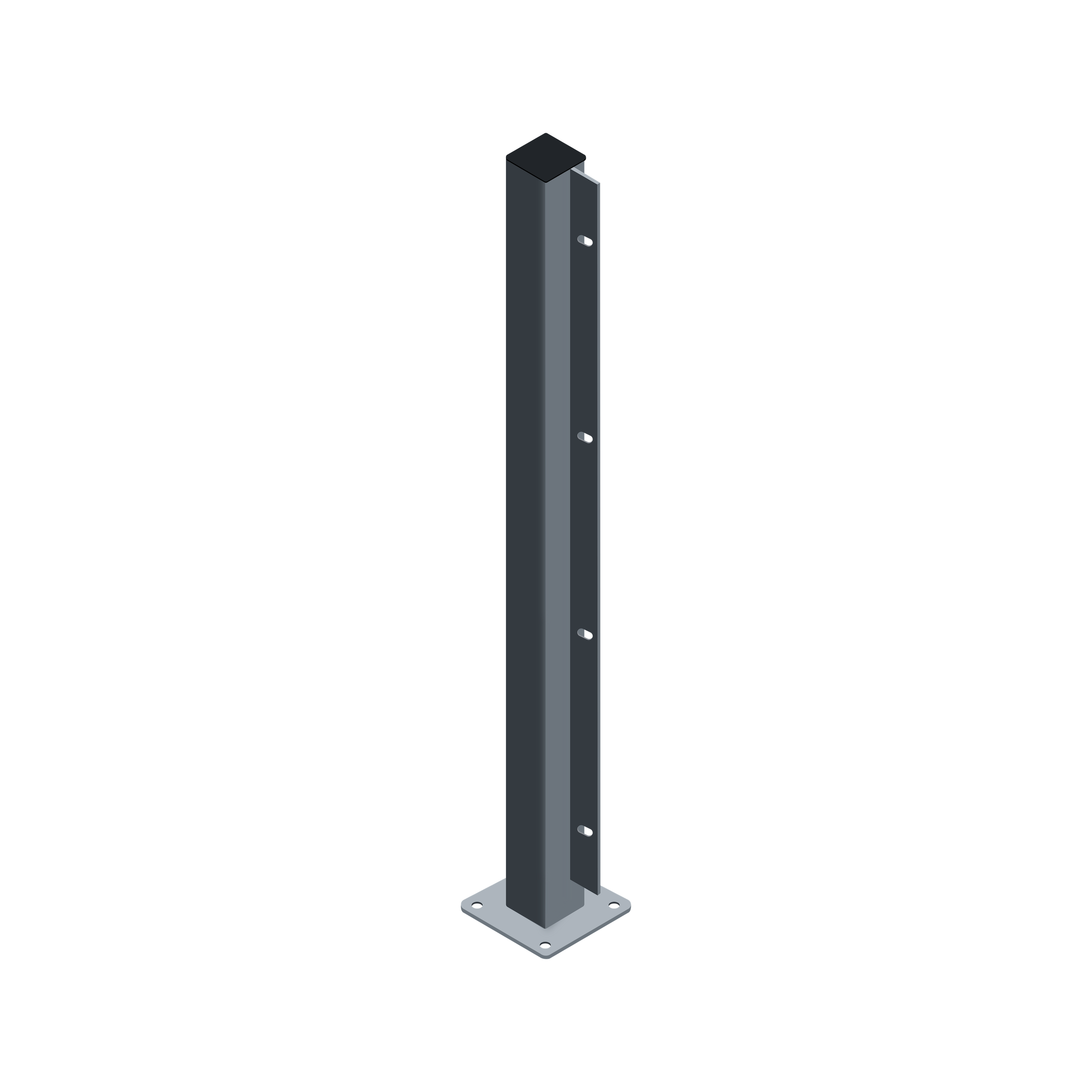 Sloupky jsou vyrobeny z pevného jeklového profilu 60×60×3 mm a standardně dodávány v odstínu RAL 7016 – antracitová šedá.