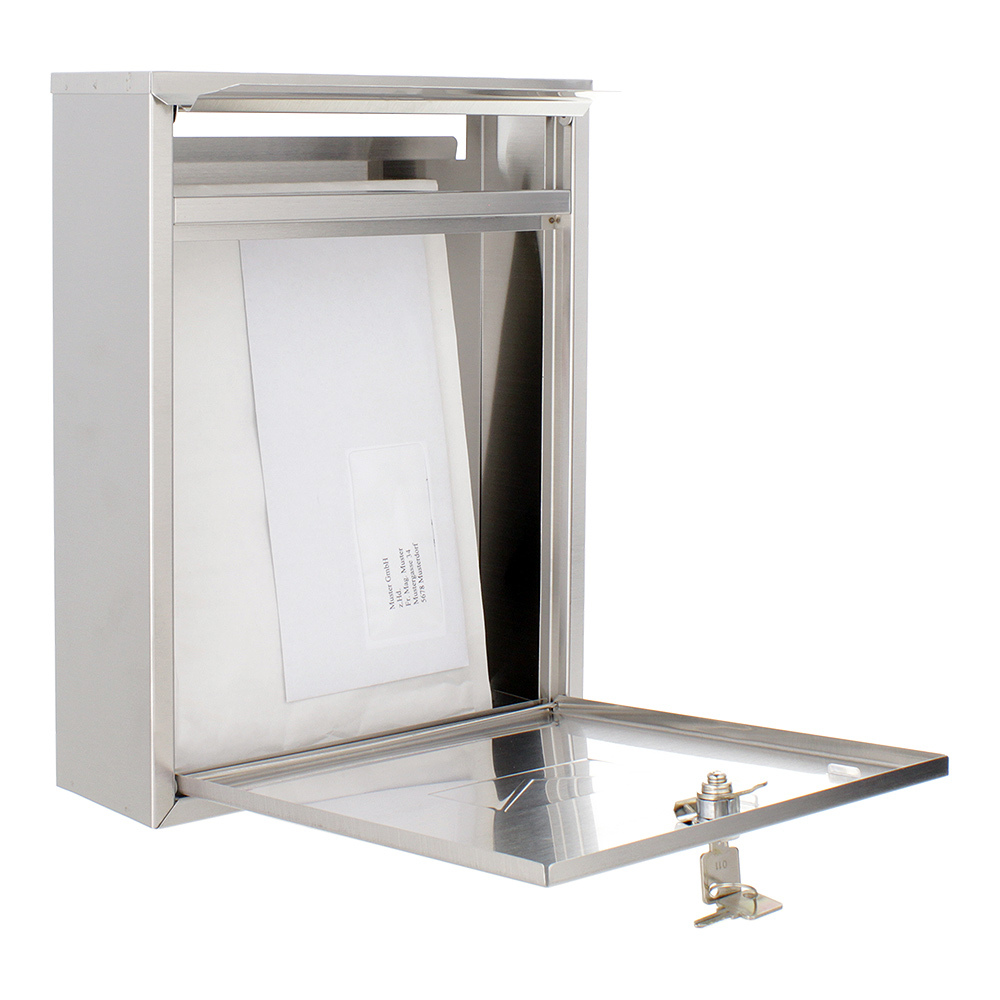 Na přední straně schránky je otvor pro vhoz a výběr pošty. Součástí balení jsou 2 klíče.