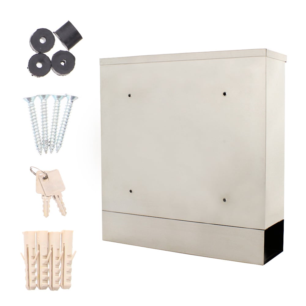 Poštovní schránka HOCHHAUS SET II je vyrobená z kvalitního materiálu - nerezavějící oceli. Přední otvor je chráněný krytem před nečistotami a dešťovou vodou. Poštu jednoduše vyndáte díky velkým předním dvířkům, které se odklápějí směrem dolů. Schránka je doplněná v dolní časti o box pro noviny a časopisy. Výhodou schránky je, že je možné jí skládat do sestav. Součástí balení je i upevňovací materiál na stěnu.