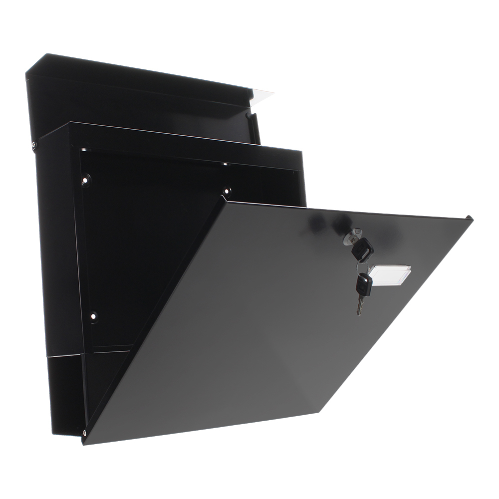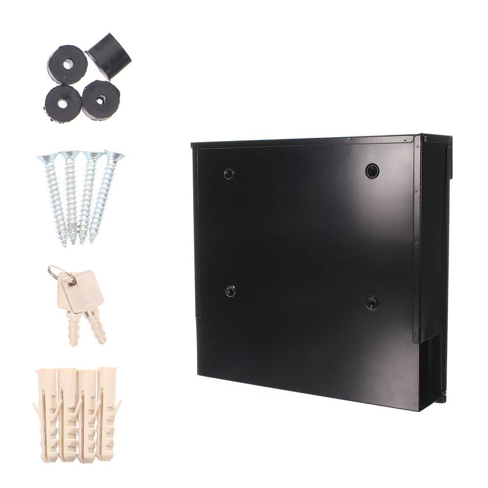 Černá poštovní schránka KENSINGTON v moderním hranatém designu je vyrobená z kvalitního materiálu - nerezavějící oceli. Je odolná vůči nepříznivým povětrnostním vlivům. Horní vhoz je chráněný stříškou před dešťovou vodou a nečistotami. Poštu jednoduše vyberete díky velkým předním dvířkám, které se odklápějí směrem dolů. V pravé horní části schránky je prostor na jmenovku. Schránka je doplněná v dolní časti o box na noviny a časopisy. Součástí balení je i upevňovací materiál na stěnu.