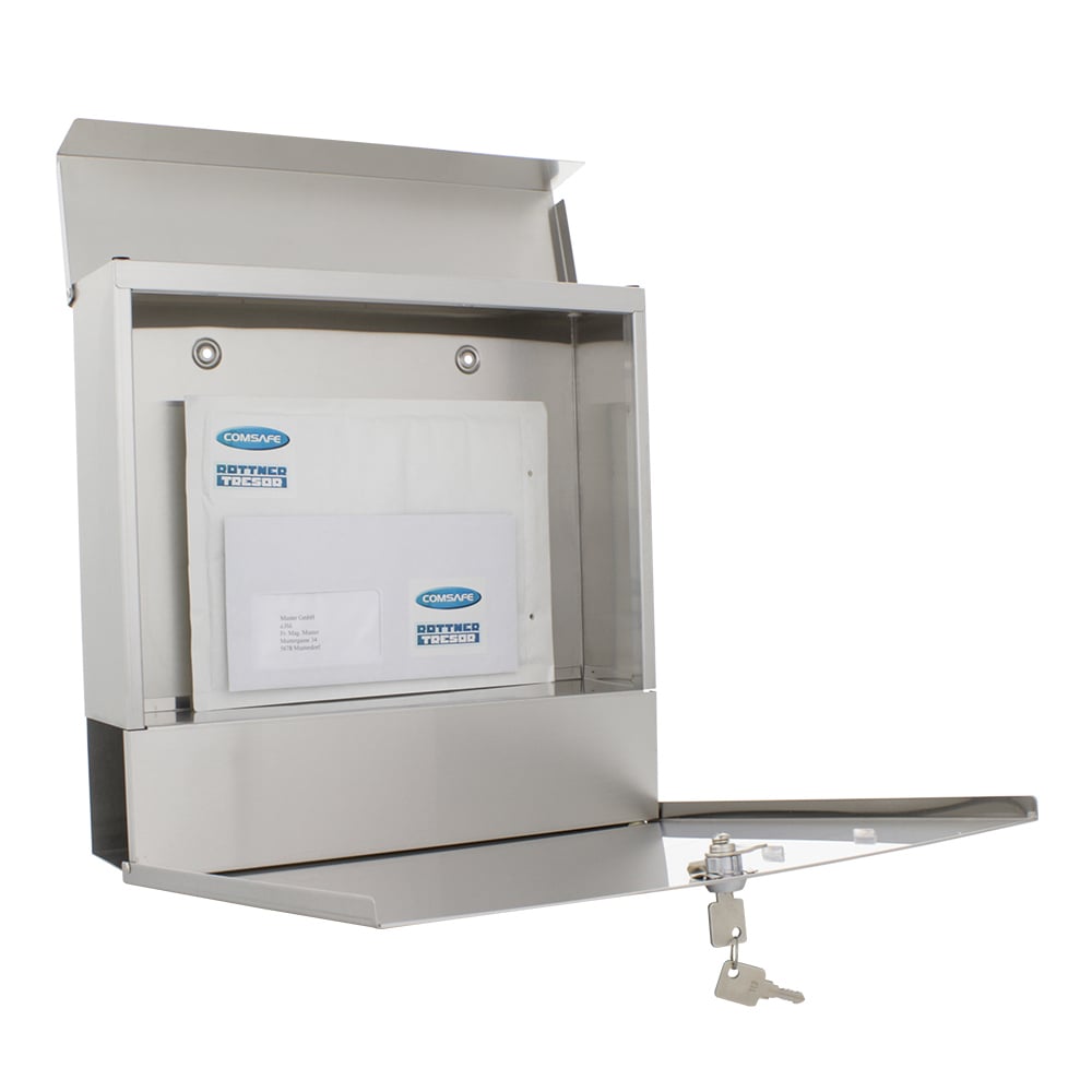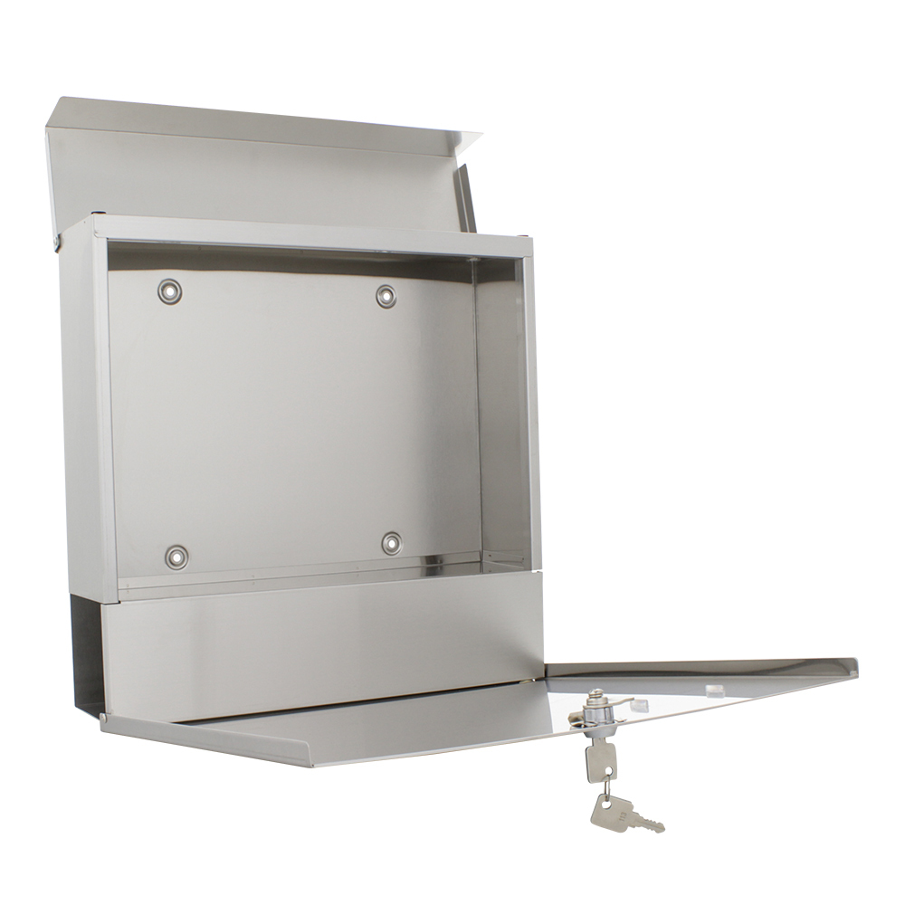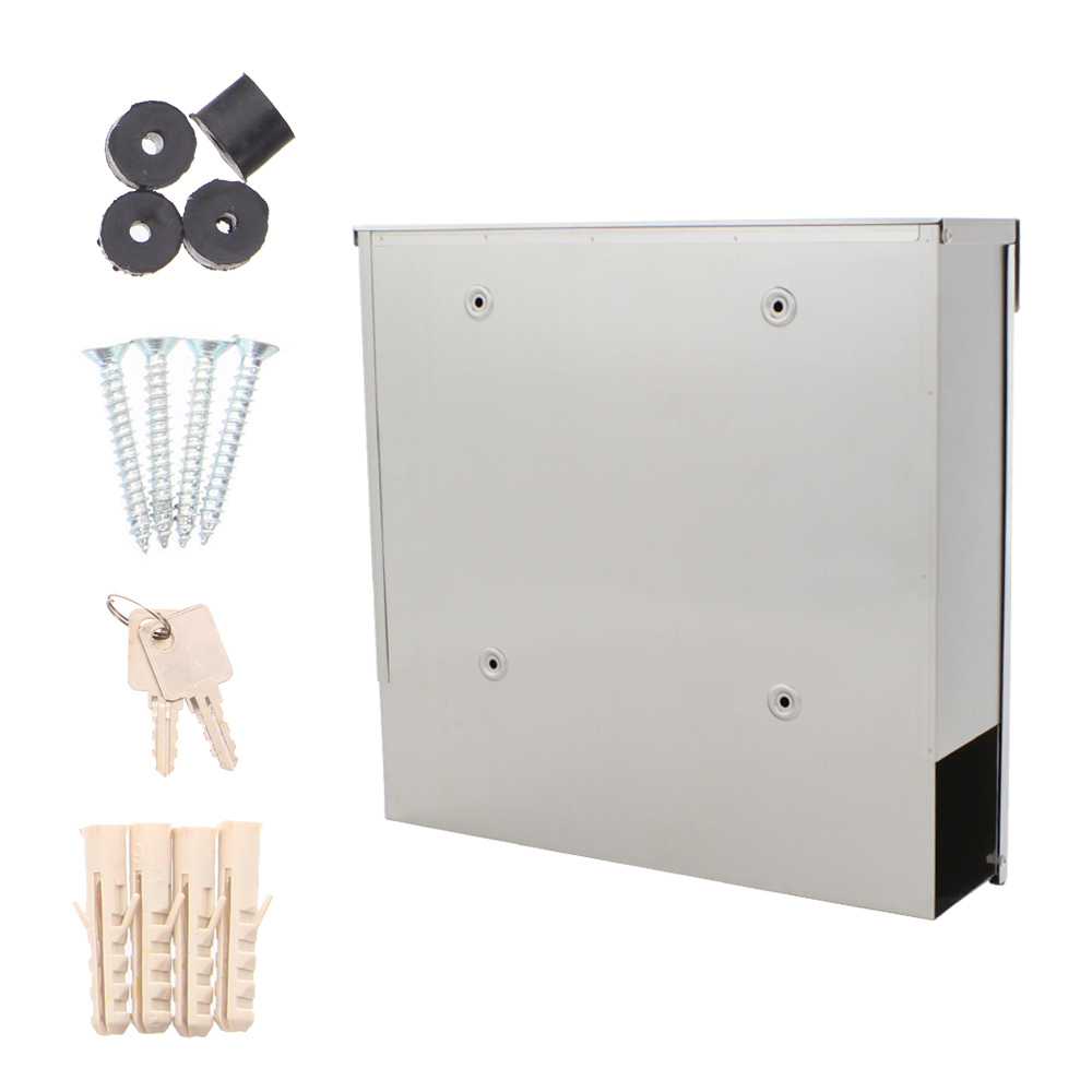 Moderní poštovní schránka KENSINGTON je vyrobená z kvalitního materiálu - nerezavějící oceli. Je odolná vůči nepříznivým povětrnostním vlivům. Horní vhoz je chráněný stříškou před dešťovou vodou a nečistotami. Poštu jednoduše vyberete díky velkým předním dvířkům, které se odklápějí směrem dolů. V pravé horní části schránky je prostor na jmenovku. Pod schránkou je nenápadně umístěný box pro noviny a časopisy. Součástí balení je i upevňovací materiál na stěnu.