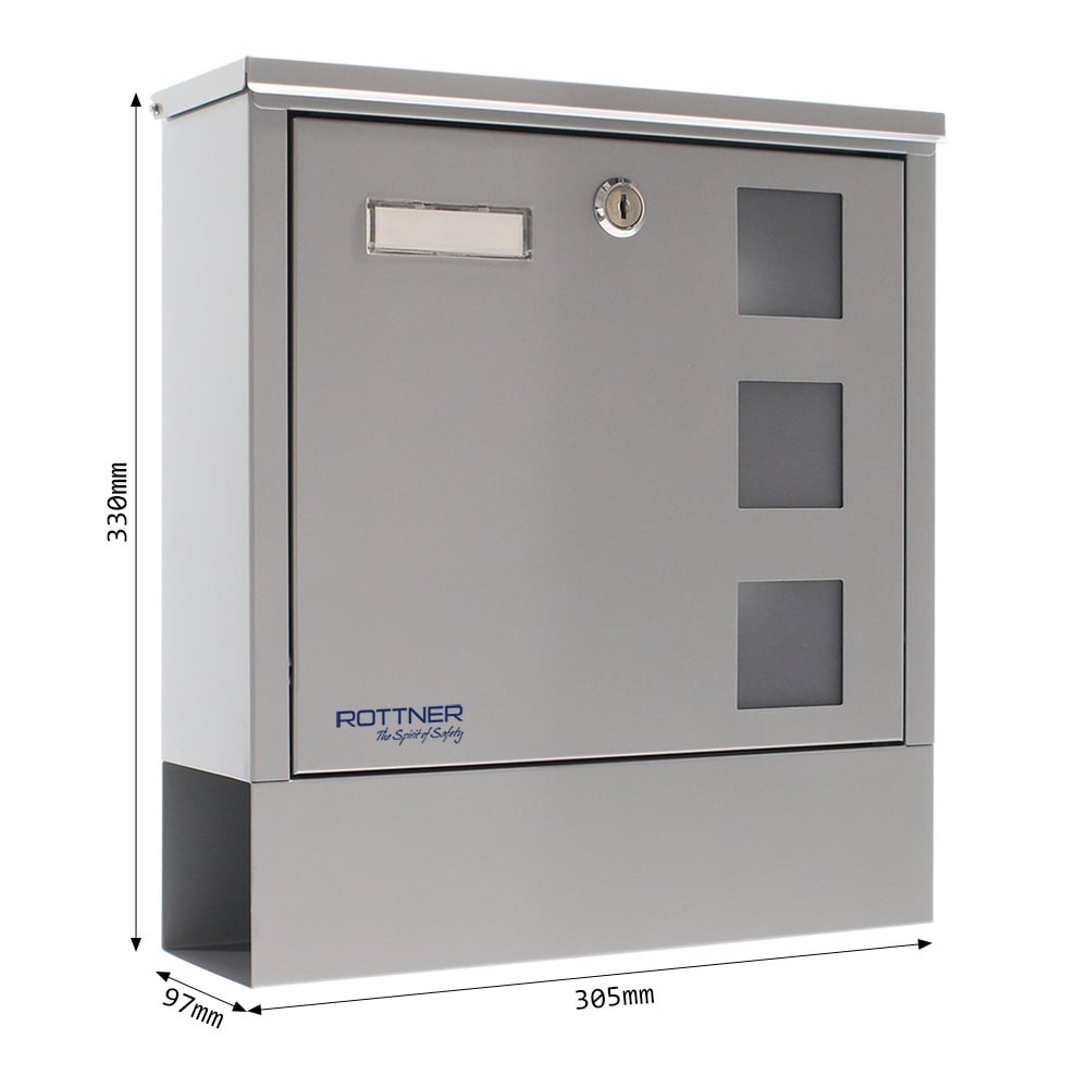 Ocelová poštovní schránka LAGO má horný vhoz s krytkou, která chrání zásilky před deštěm a nečistotami. Poštu jednoduše vyberete díky velkým předním dvířkám, které se odklápějí směrem dolů. V levé horní části schránky je prostor na jmenovku. Schránka je doplněná v dolní části o box pro noviny a časopisy. Tři transparentní okénka rychle prozradí, jestli schránka obsahuje poštu. Součástí balení je i upevňovací materiál, pomocí kterého lehce upevníte schránku na stěnu přes otvory na zadní straně.