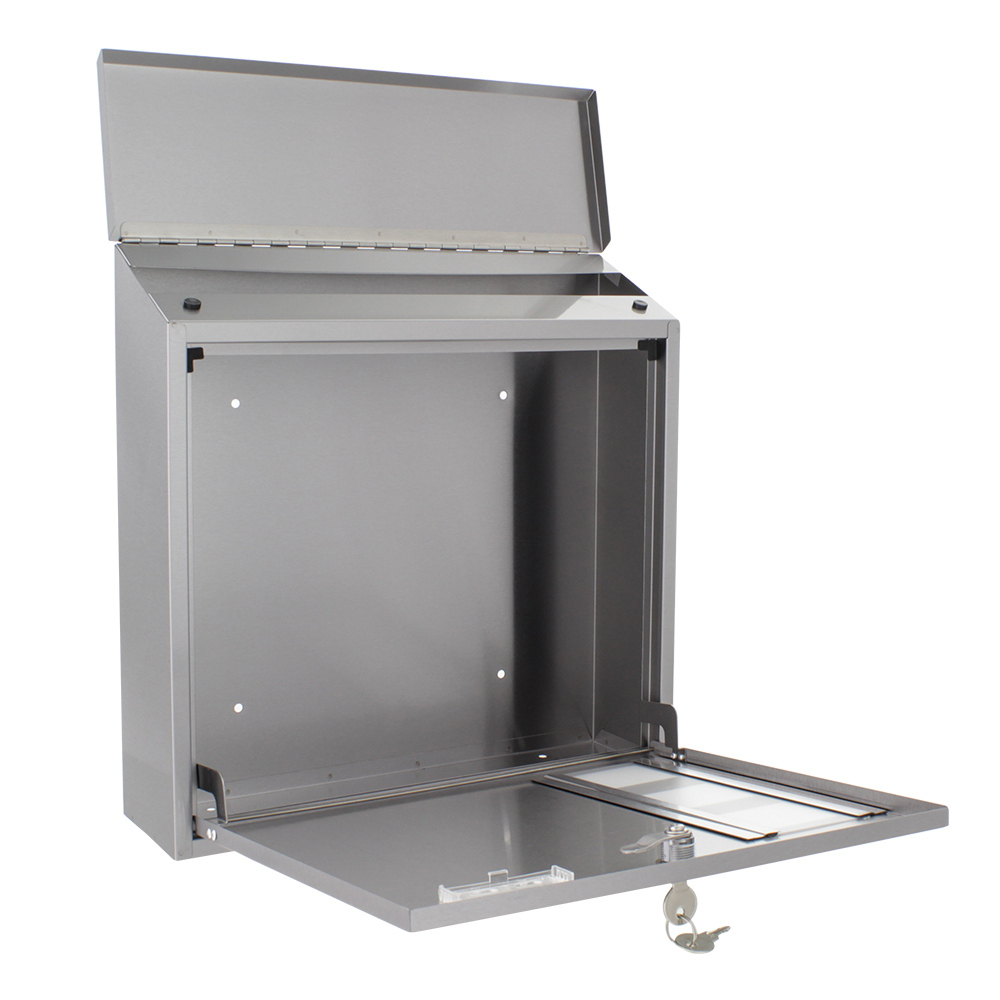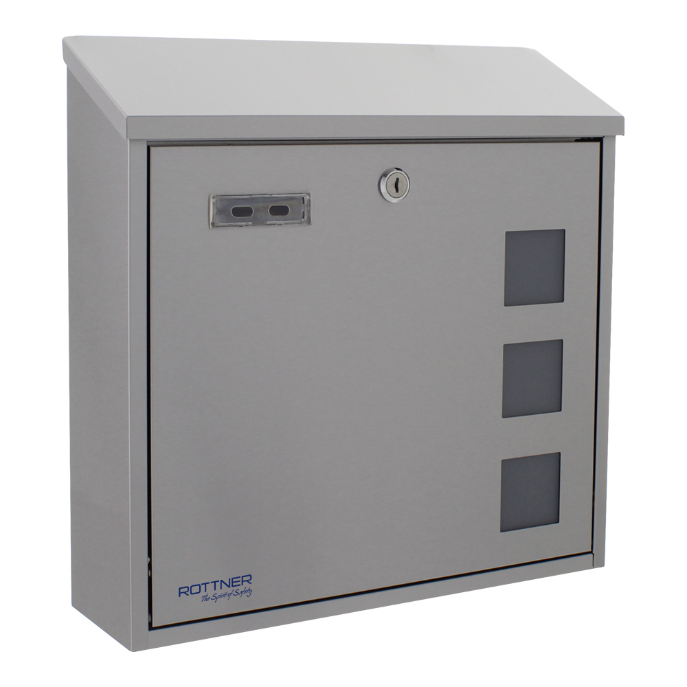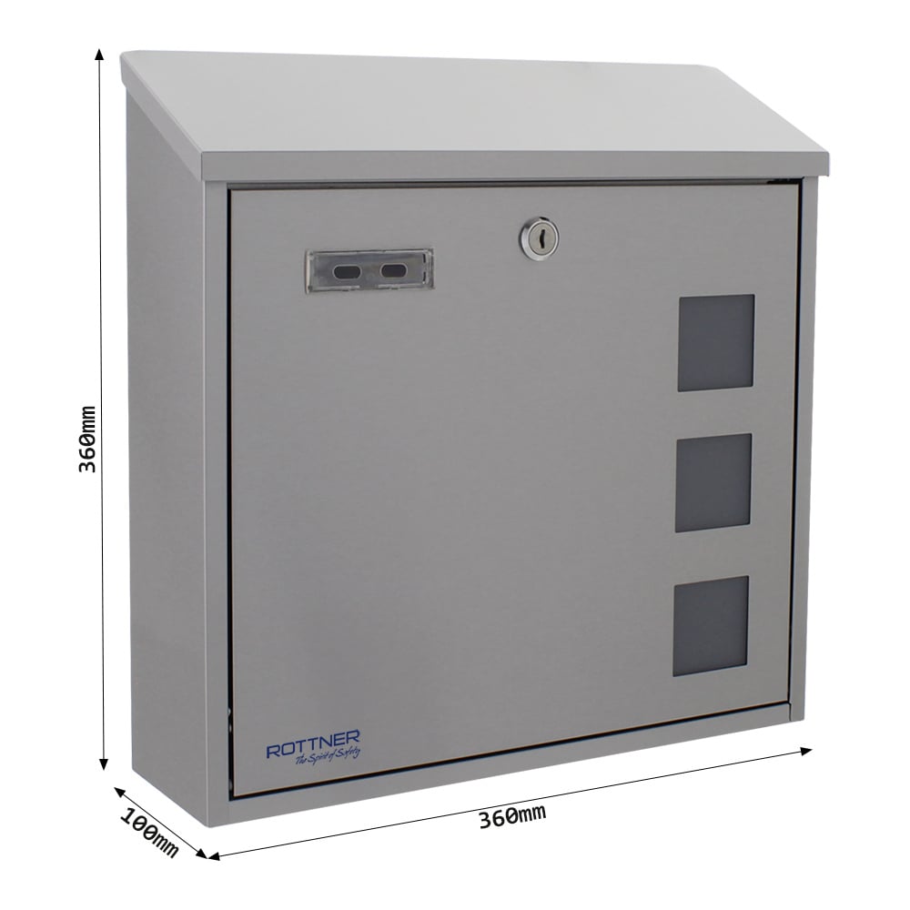 Poštovní schránka MURO je vyrobená z kvalitního materiálu - nerezavějící oceli. Má horní vhoz s krytkou, která chrání zásilky před deštěm a nečistotami. Poštu jednoduše vyzvednete díky velkým předním dvířkám, které se odklápějí směrem dolů. V levé horní časti schránky je prostor na jmenovku. Tři transparentní okénka rychle prozradí jestli schránka obsahuje poštu. Součástí balení je i upevňovací materiál, pomocí kterého lehce upevníte schránku na stěnu přes otvory na zadní straně.