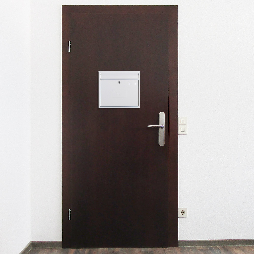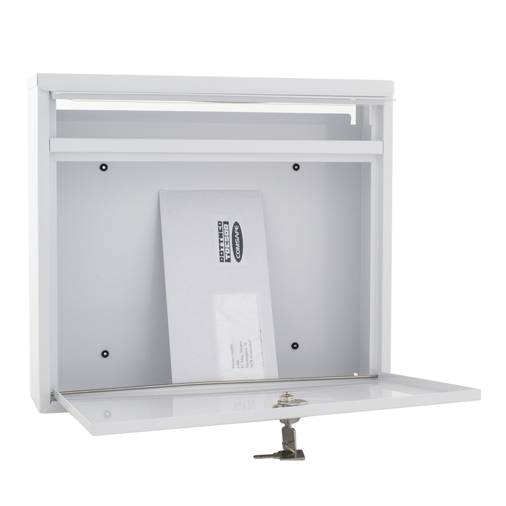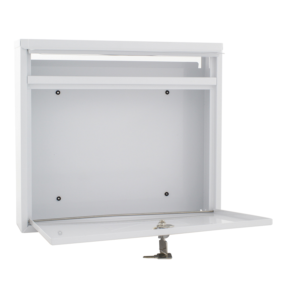 Na přední straně schránky je otvor pro vhoz a výběr pošty. Součástí balení jsou 2 klíče.