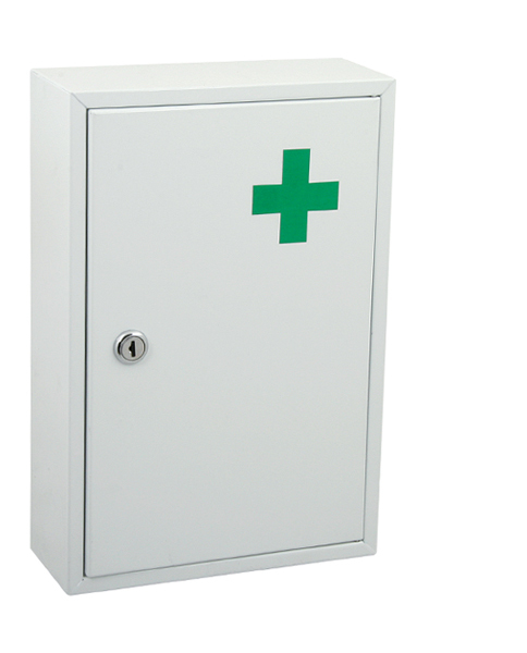 Nástěnná lékárnička je vyrobena z pozinkovaného plechu ošetřeného práškovou vypalovací barvou.