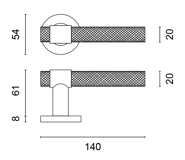 Kování je dodáváno se šrouby a čtyřhranem (8x8 mm) pro max. tloušťku dveří 43 mm.