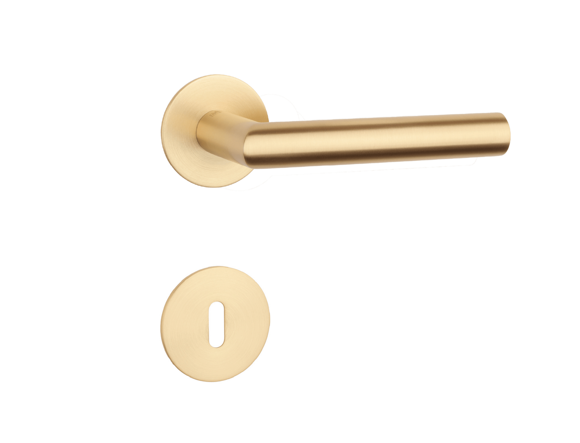 Rozetová klika na interiérové dveře s kulatou rozetou je vyrobena z odolné nerezavějící oceli s precizní povrchovou úpravou, která zabezpečuje dlouhou životnost a jednoduchou údržbu. Klika je vybavena dvojitými, samonivelačními kovovými pružinami a kliky dveří jsou trvale spojeny s kovovými adaptéry, což zaručuje prakticky celoživotní používání v domácích podmínkách.