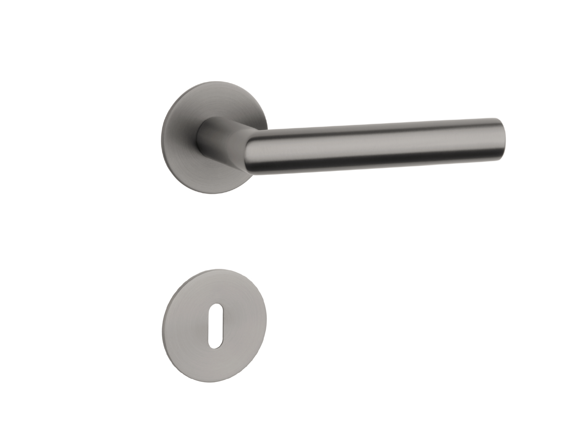 Rozetová klika na interiérové dveře s kulatou rozetou je vyrobena z odolné nerezavějící oceli s precizní povrchovou úpravou, která zabezpečuje dlouhou životnost a jednoduchou údržbu. Klika je vybavena dvojitými, samonivelačními kovovými pružinami a kliky dveří jsou trvale spojeny s kovovými adaptéry, což zaručuje prakticky celoživotní používání v domácích podmínkách.