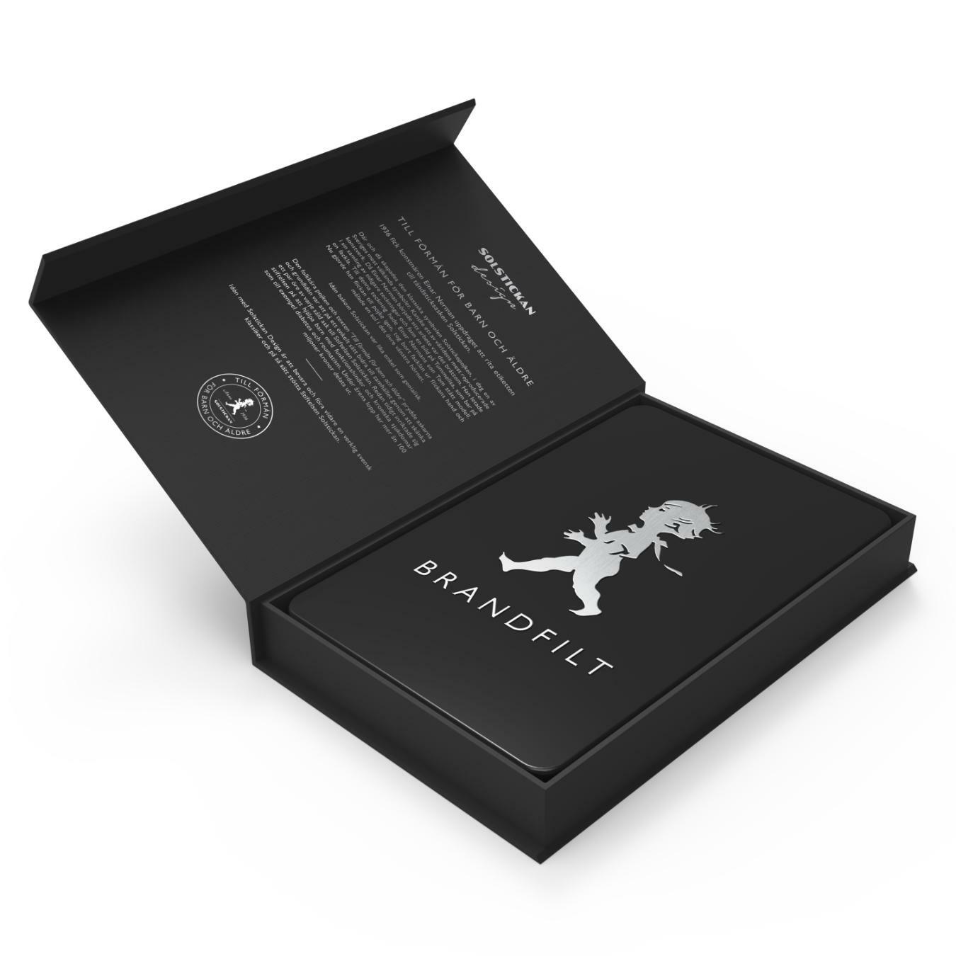 Kovový box je umístěn ve stylové krabičce, která se otevírá z boční strany na magnet. Deku v boxu můžete zavěsit na zeď a krabičku využít jako úložný prostor. pro ovladače k ​​TV, brýle nebo jiné předměty. Šrouby pro upevnění boxu na zeď nejsou součástí balení.