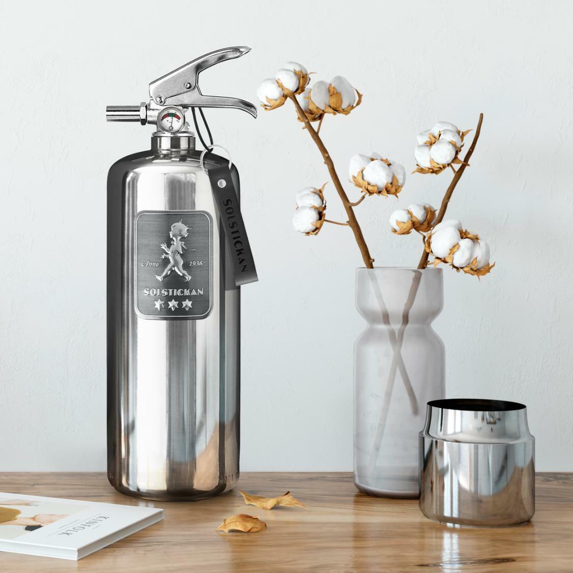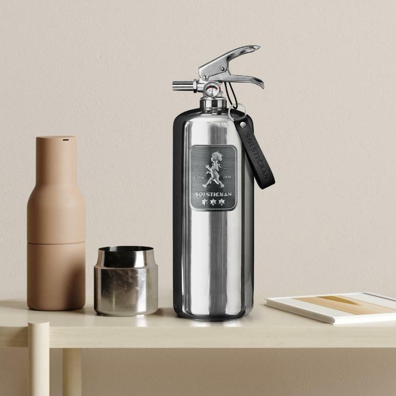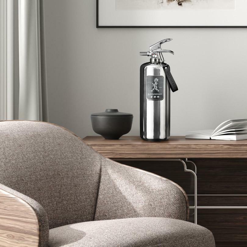 Exkluzivní práškový hasicí přístroj s elegantnými detaily je navrhnutý pro stylové domácnosti. Je vyrobený z leštěné nerezavějící oceli v luxusním severském designu ozdobený červeným řemínkem a klasickým oblíbeným švédskym motivem chlapce od Einera Nermana nakresleného v roke 1936. Přístroj je zabalený v textilním sáčku s emblémem a v kartonové krabici.