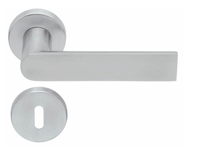 Rozetová klika na interiérové ​​dveře s kulatou rozetou je vyrobena z vysoce kvalitní nerezavějící oceli, známé jako nerez a je povrchově upravena.