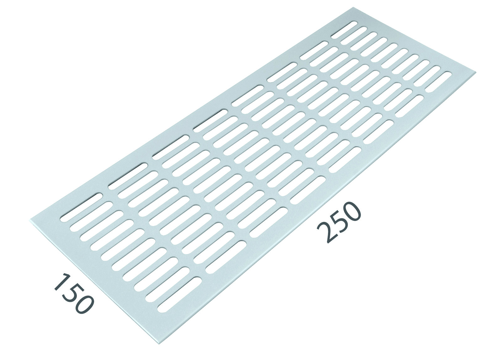 Větrací mřížka se šířkou 150 mm je vyrobena z hliníku a je povrchově upravena.