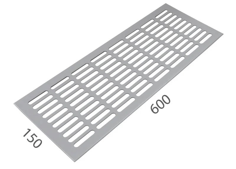 Větrací mřížka se šířkou 150 mm je vyrobena z hliníku a je povrchově upravena.