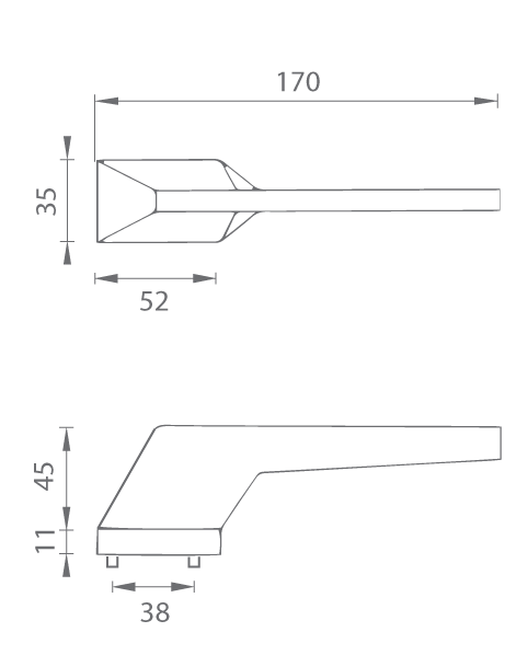 Rozetová klika na interiérové dveře s obdélníkovou rozetou je vyrobena z materiálů vysoké kvality - mosaz a je povrchově upravena. Rozeta má rozměry 52 mm x 35 mm a standardní tloušťku 11 mm. Samotná rozeta je součástí designu kliky. Unikátní nadčasový design TUPAI ICE inspirovaný impozantní krásou ledovce.