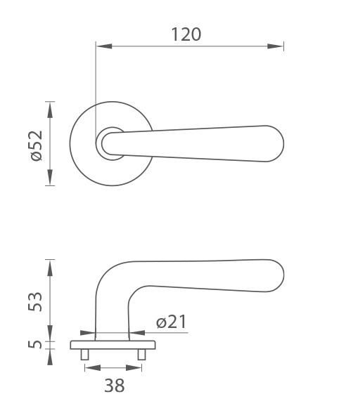 Rozetová klika na interiérové ​​dveře s kulatou rozetou je vyrobena z materiálů vysoké kvality - zamak a je povrchově upravena. Rozeta má průměr 52 mm a tloušťku pouze 5 mm.