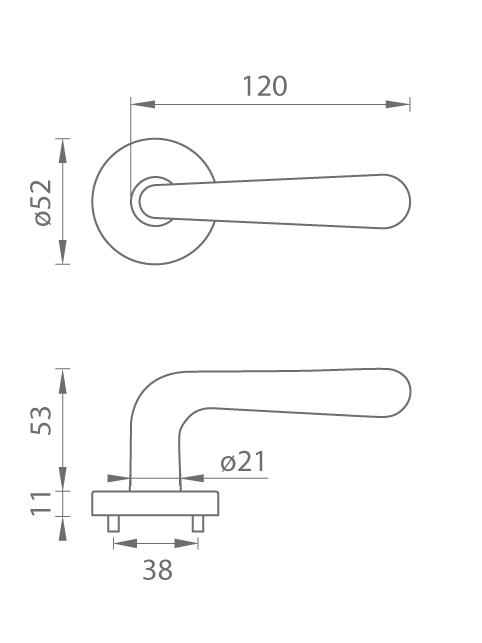 Rozetová klika na interiérové dveře s kulatou rozetou je vyrobena z materiálů vysoké kvality - zamak a je povrchově upravena. Rozeta má průměr 52 mm a standardní tloušťku 11 mm.