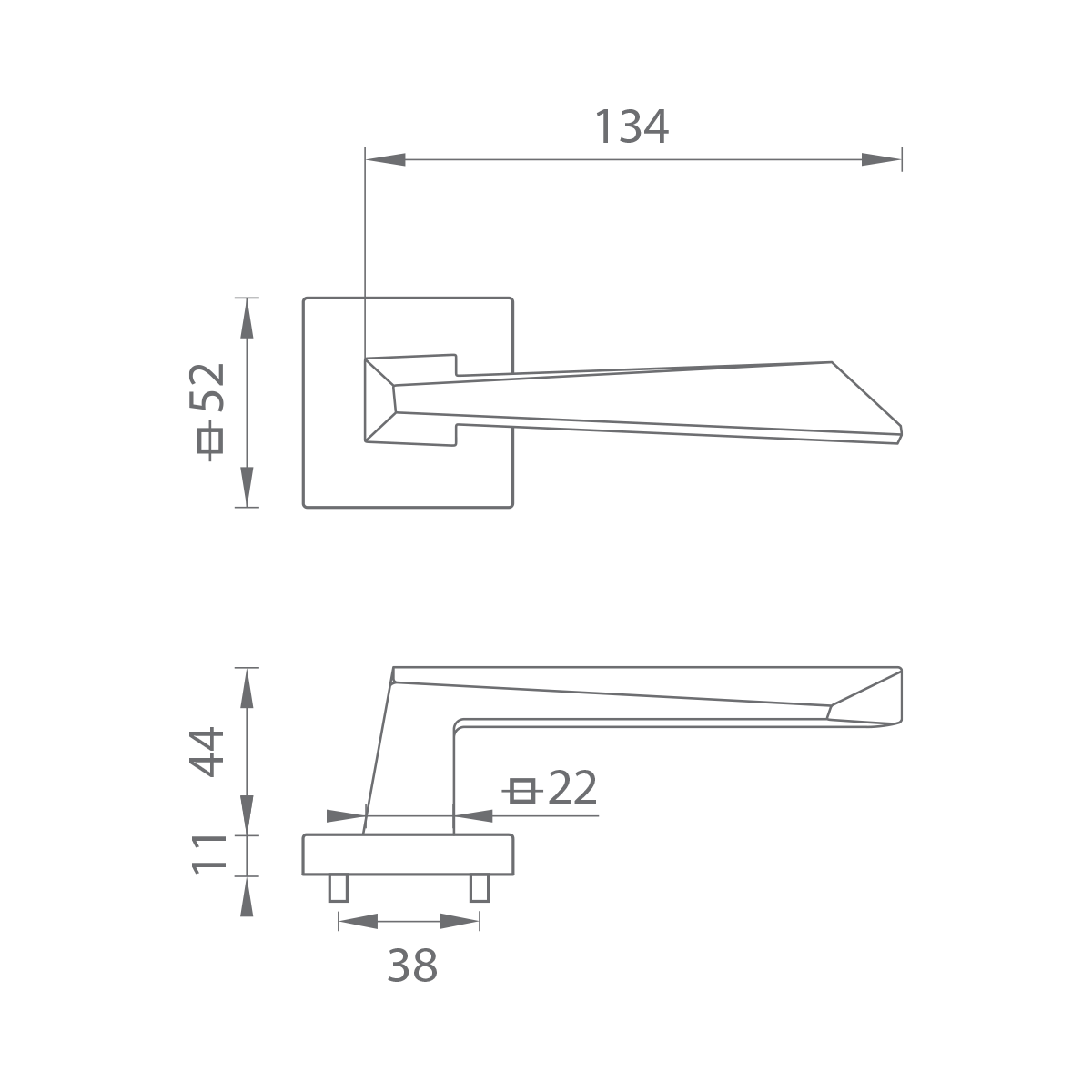 Rozetová klika na interiérové ​​dveře s hranatou rozetou je vyrobena z materiálů vysoké kvality - zamak a je povrchově upravena. Rozeta má rozměry 52 mm x 52 mm a standardní tloušťku 11 mm.