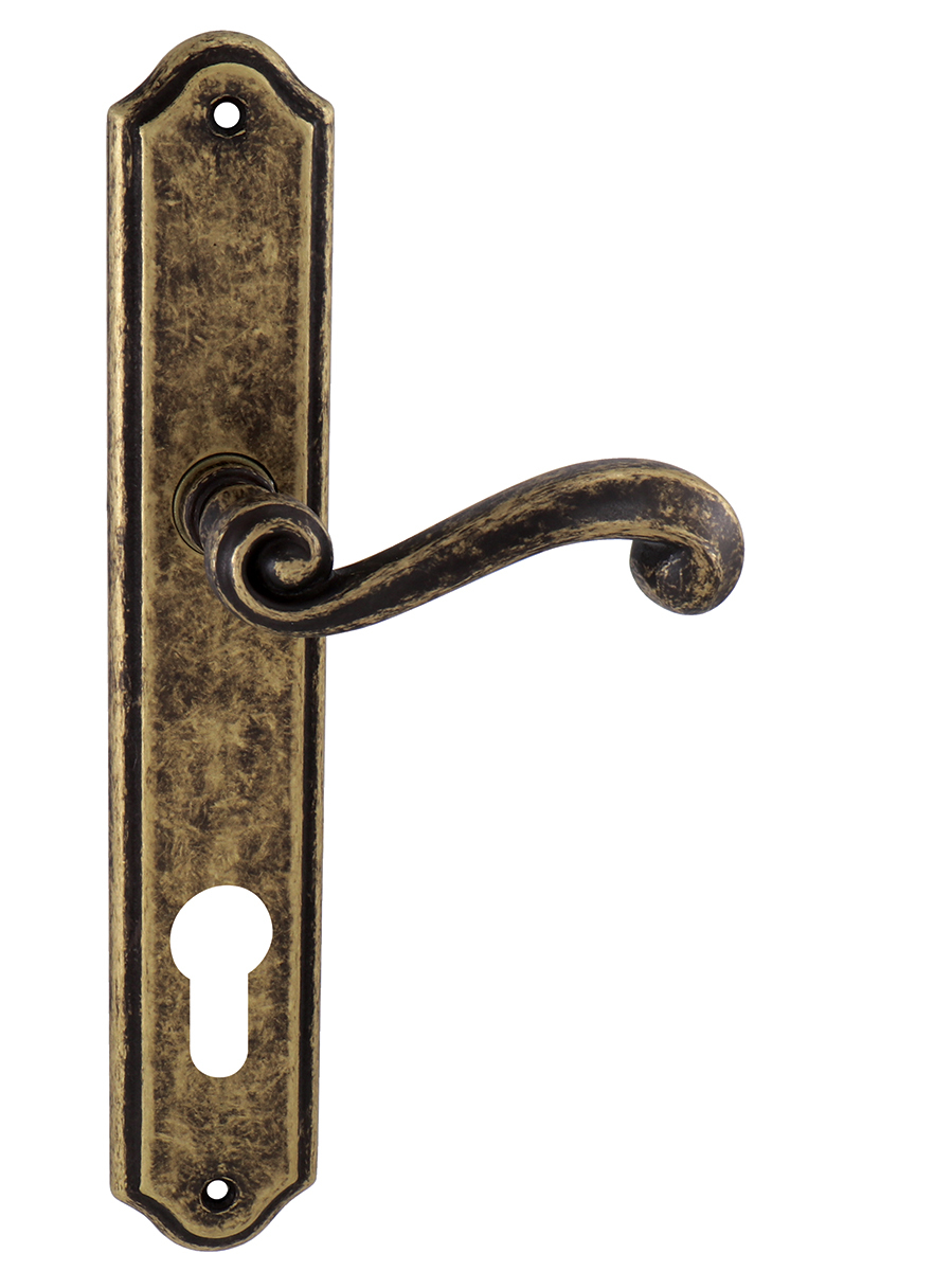 Štítová klika na interiérové ​​dveře s rustikálním štítem je vyrobena z materiálů vysoké kvality - mosaz a je povrchově upravena. Rustikální štít má rozměry 48 mm x 277 mm a klika obsahuje vratný mechanismus.