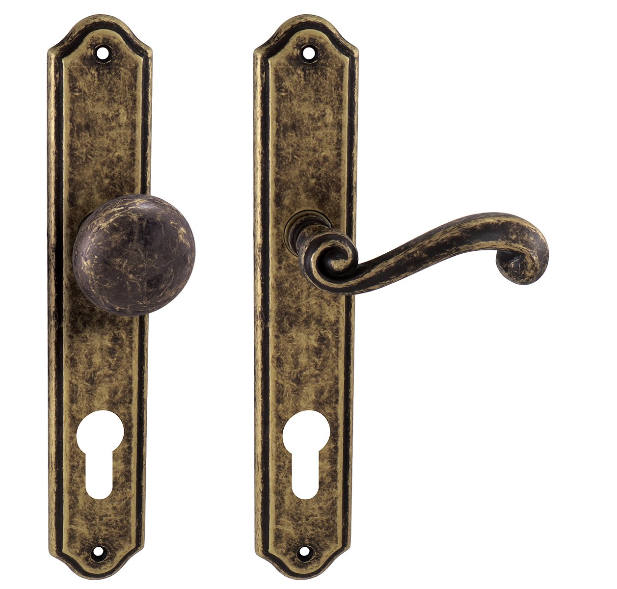 TI - CARLA - 704 OBA - Antik bronz (46) - PZ otvor pro vložku - 90 mm - koule/klika pravá