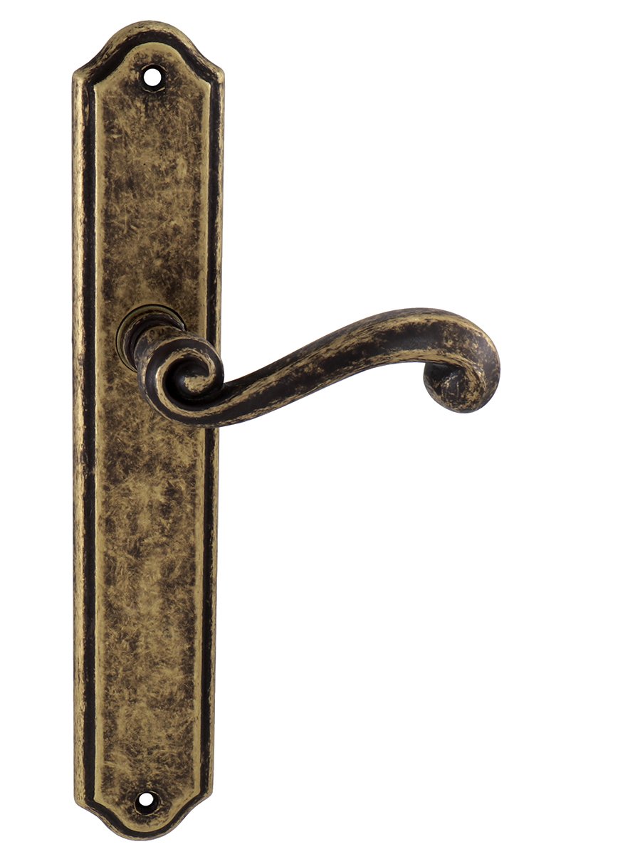 Štítová klika na interiérové dveře s rustikálním štítem je vyrobena z materiálů vysoké kvality - mosaz a je povrchově upravena. Rustikální štít má rozměry 48 mm x 277 mm a klika obsahuje vratný mechanismus.