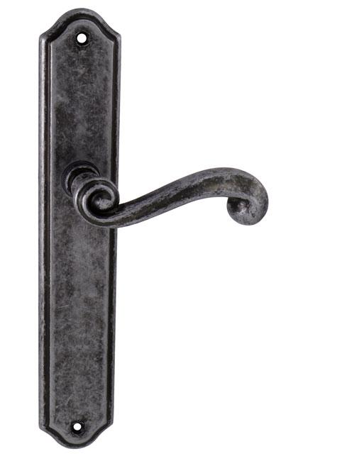 Štítová klika na interiérové ​​dveře s rustikálním štítem je vyrobena z materiálů vysoké kvality - mosaz a je povrchově upravena. Rustikální štít má rozměry 48 mm x 277 mm a klika obsahuje vratný mechanismus.