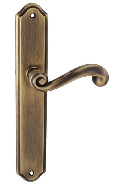 Štítová klika na interiérové ​​dveře s rustikálním štítem je vyrobena z materiálů vysoké kvality - mosaz a je povrchově upravena. Rustikální štít má rozměry 48 mm x 277 mm a klika obsahuje vratný mechanismus.