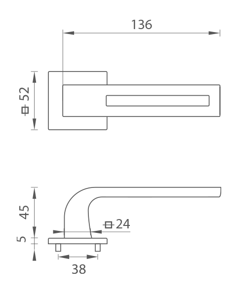 Rozetová klika na interiérové ​​dveře s hranatou rozetou je vyrobena z materiálů vysoké kvality - zamak a je povrchově upravena. Rozeta má rozměry 52 mm x 52 mm a tloušťku pouze 5 mm.