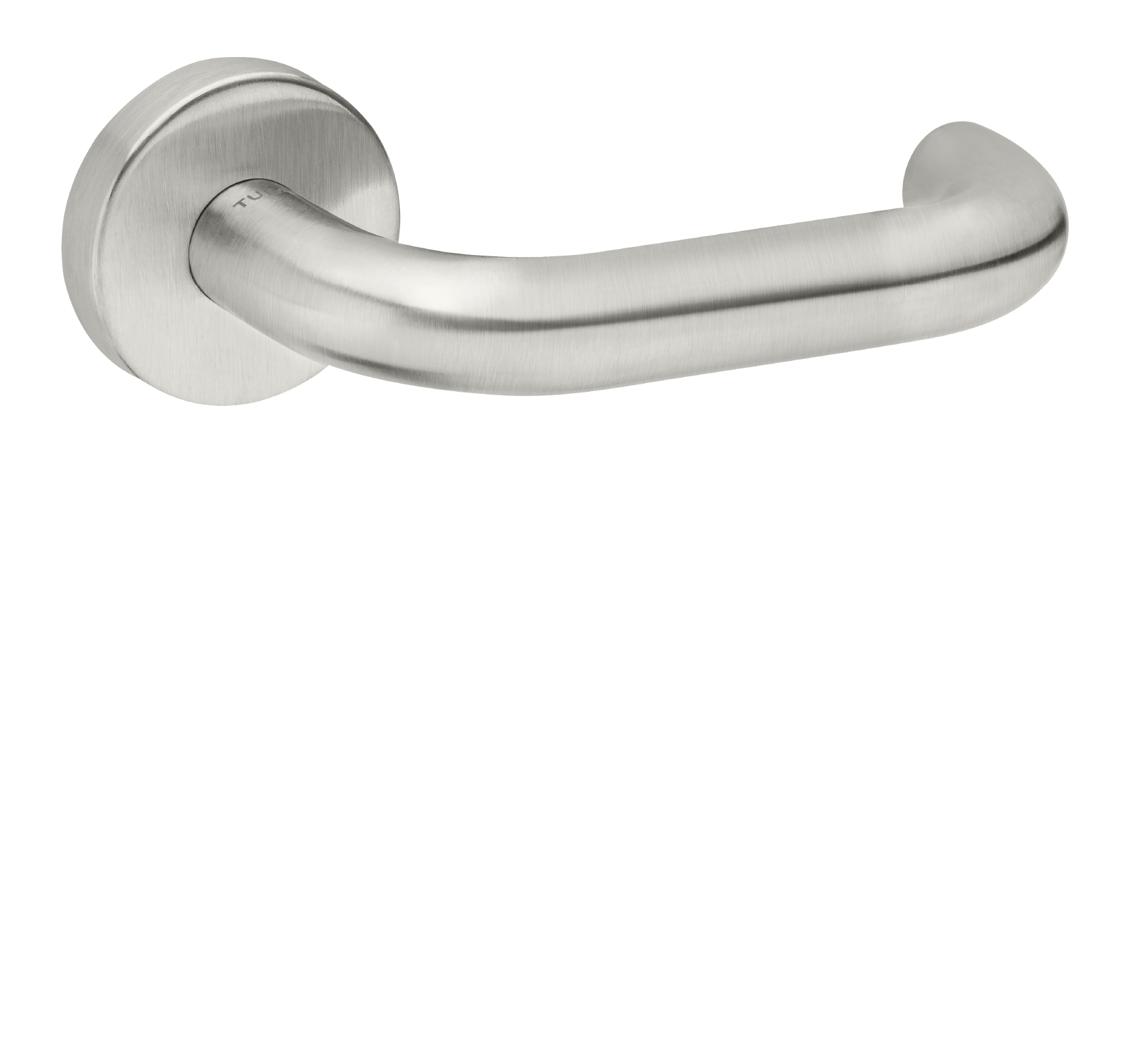 Rozetová klika na interiérové ​​dveře s kulatou rozetou je vyrobena z vysoce kvalitní nerezavějící oceli, známé jako nerez a je povrchově upravena. Rozeta má průměr 52 mm a standardní tloušťku 11 mm.