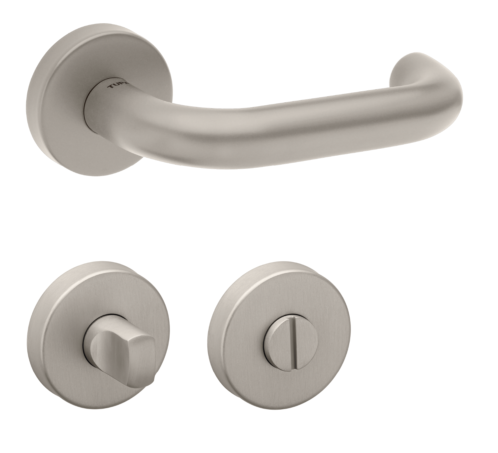 Rozetová klika na interiérové ​​dveře s kulatou rozetou je vyrobena z vysoce kvalitní nerezavějící oceli, známé jako nerez a je povrchově upravena. Rozeta má průměr 52 mm a standardní tloušťku 11 mm.