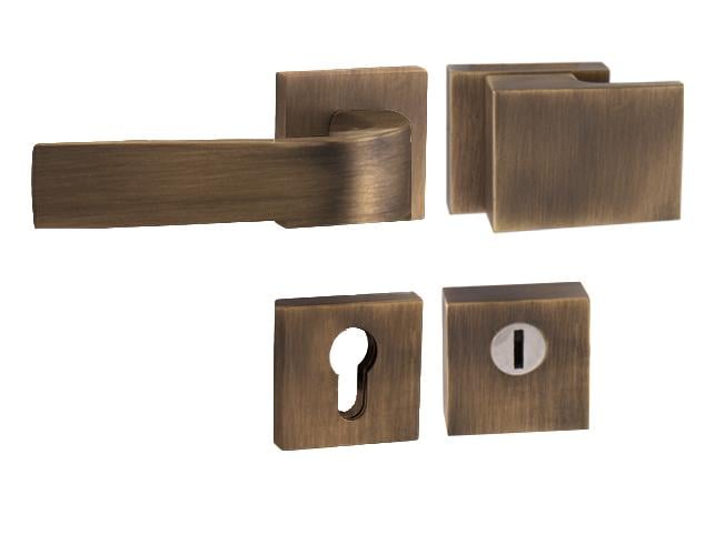 Rozetová klika na vchodové a bezpečnostní dveře s hranatou rozetou s překrytím cylindrické vložky je vyrobena z materiálů vysoké kvality - zamak / ocel a je povrchově upravena. Hranatá rozeta má rozměry 52 mm x 52 mm (resp. 55 mm x 52 mm) a tloušťku 17 mm.