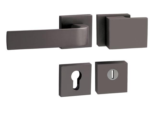 Rozetová klika na vchodové a bezpečnostní dveře s hranatou rozetou s překrytím cylindrické vložky je vyrobena z materiálů vysoké kvality - zamak / ocel a je povrchově upravena. Hranatá rozeta má rozměry 52 mm x 52 mm (resp. 55 mm x 52 mm) a tloušťku 17 mm.