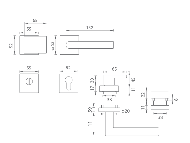 Rozetová klika na vchodové a bezpečnostní dveře s hranatou rozetou s překrytím cylindrické vložky je vyrobena z materiálů vysoké kvality - zamak / ocel a je povrchově upravena. Hranatá rozeta má rozměry 52 mm x 52 mm (resp. 55 mm x 52 mm) a tloušťku 17 mm.