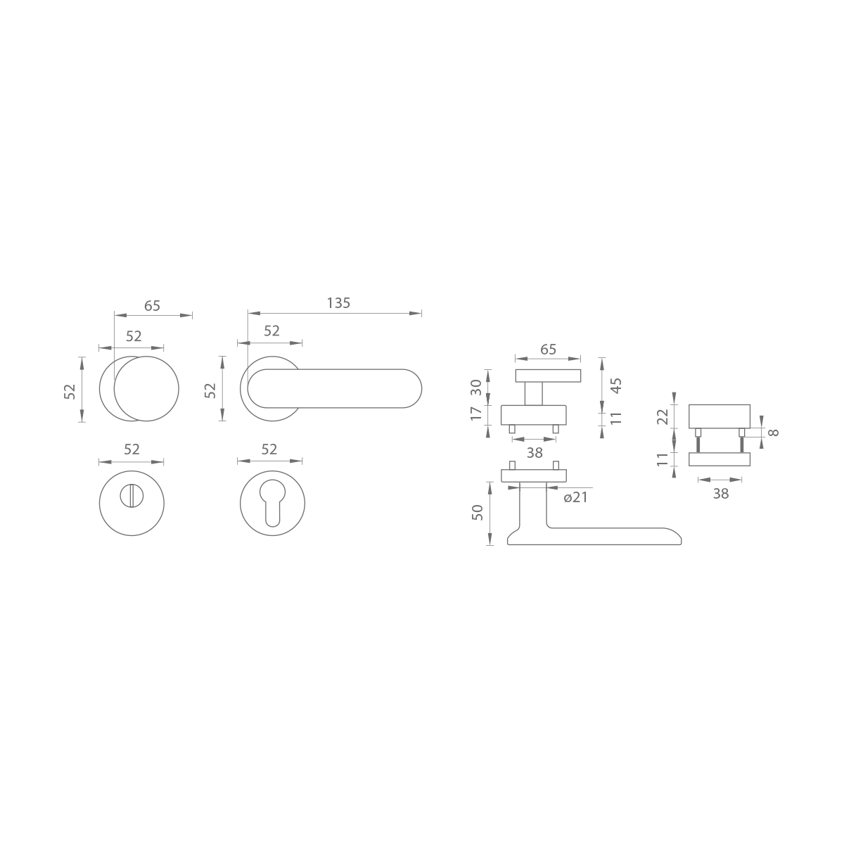 Bezpečnostní interiérová rozetová klika na vchodové a bezpečnostní dveře s kulatou rozetou s překrytím cylindrické vložky je vyrobená z materiálů vysoké kvality – zamak / ocel a je povrchově upravená. Kulatá rozeta má průměr 52 mm a tloušťku 17 mm.