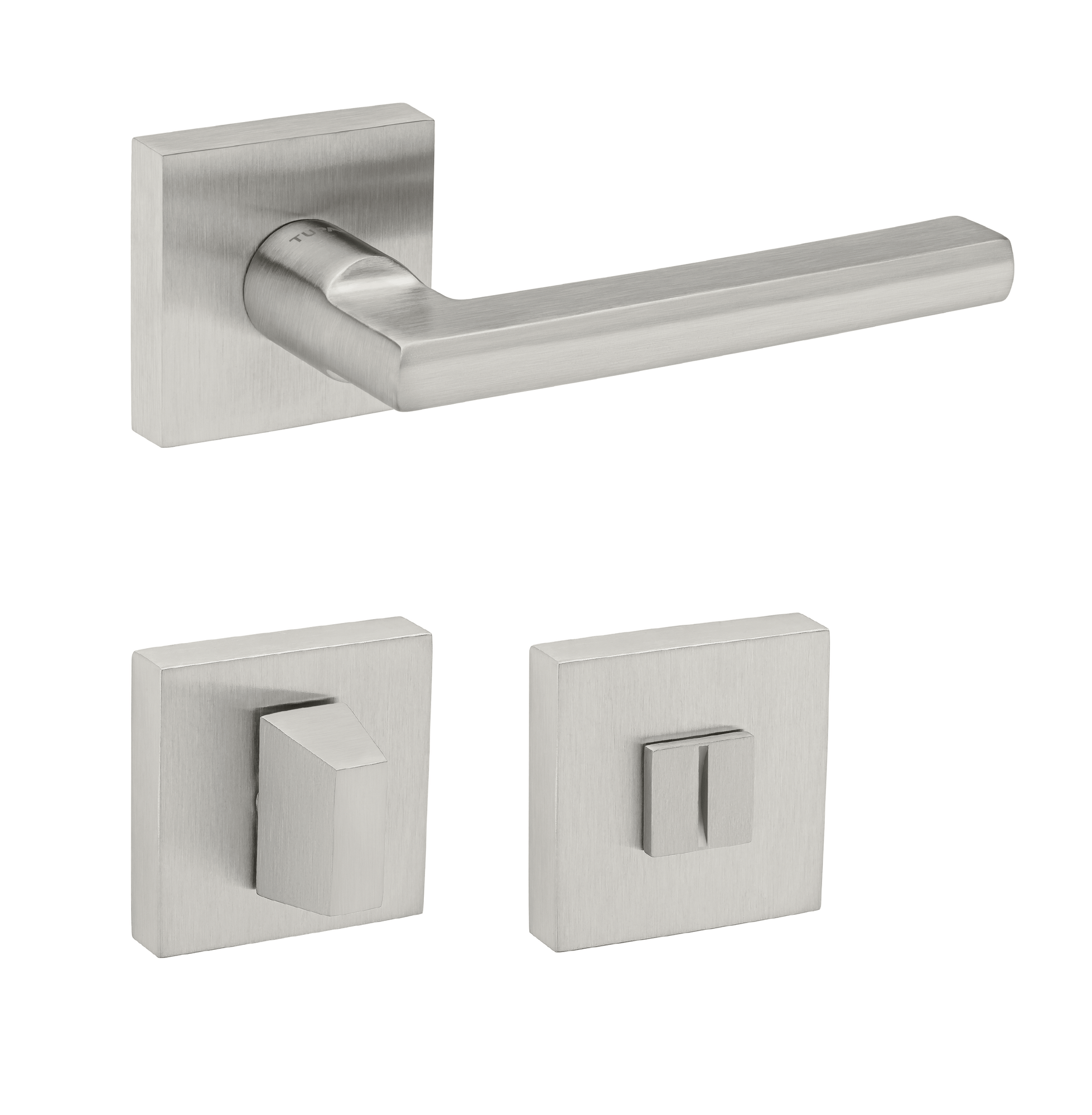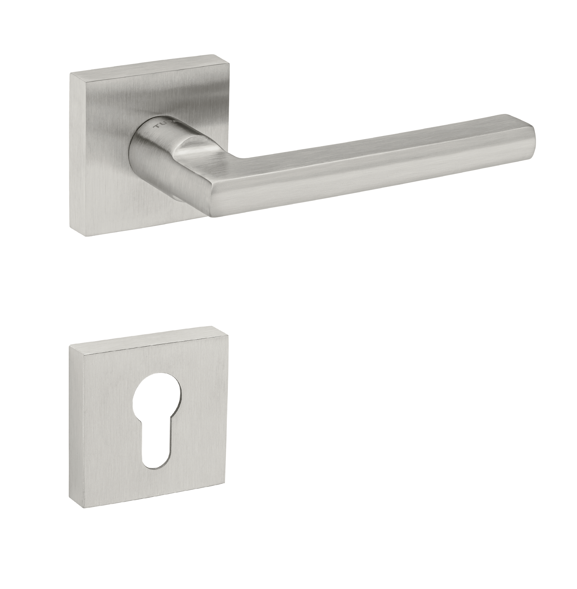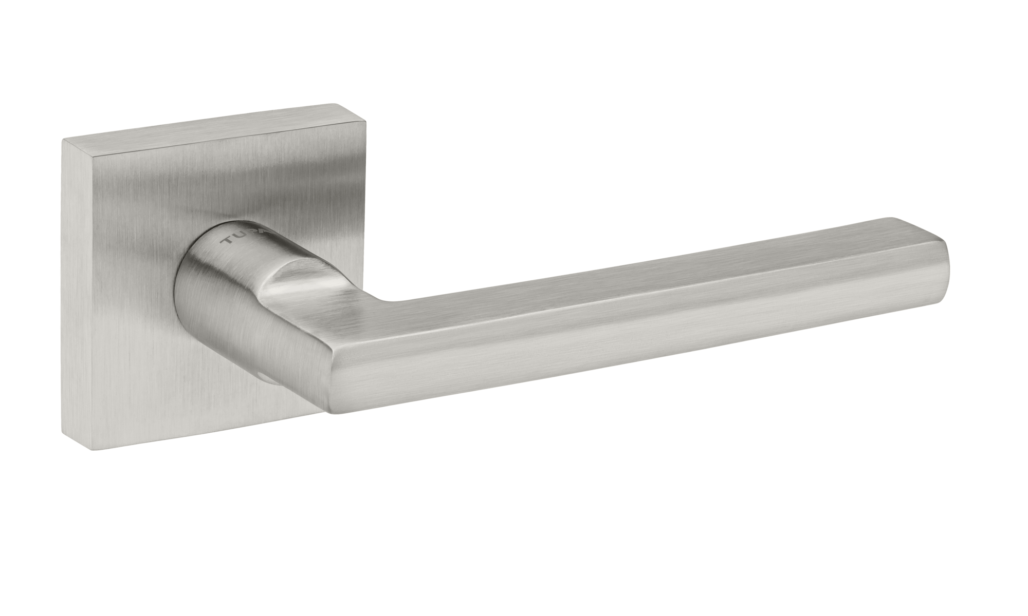 Rozetová klika na interiérové dveře s hranatou rozetou je vyrobena z vysoce kvalitní nerezavějící oceli, známé jako nerez a je povrchově upravena. Rozeta má rozměry 52 mm x 52 mm a standardní tloušťku 11 mm.