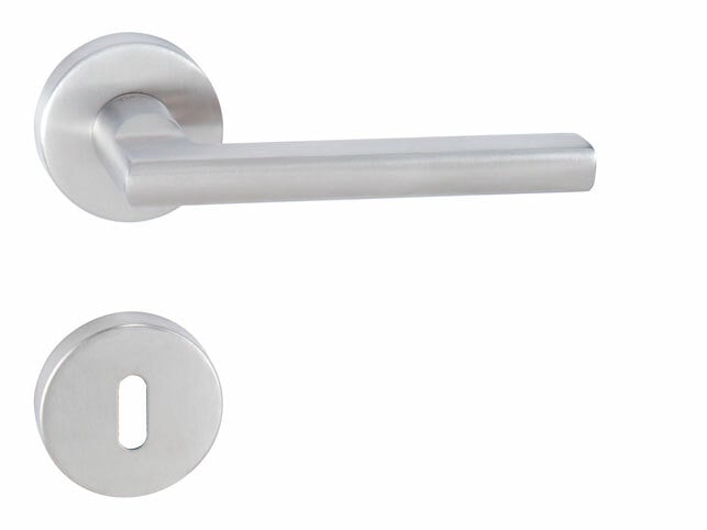 Rozetová klika na interiérové ​​dveře s kulatou rozetou je vyrobena z vysoce kvalitní nerezavějící oceli, známé jako nerez a je povrchově upravena. Rozeta má průměr 52 mm a standardní tloušťku 11 mm.