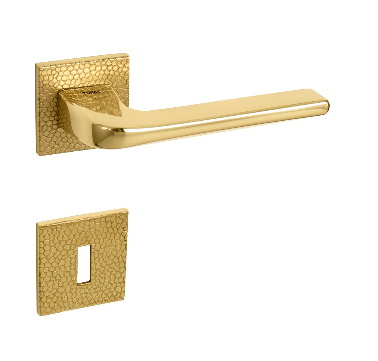 Designová rozetová klika na interiérové dveře vyrobená z kvalitního materiálu - mosaz. Čtvercová rozeta má rozměr 52 x 52 mm a tloušťku jen 5 mm.