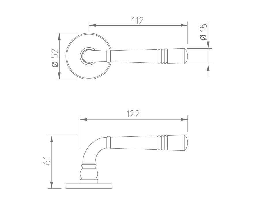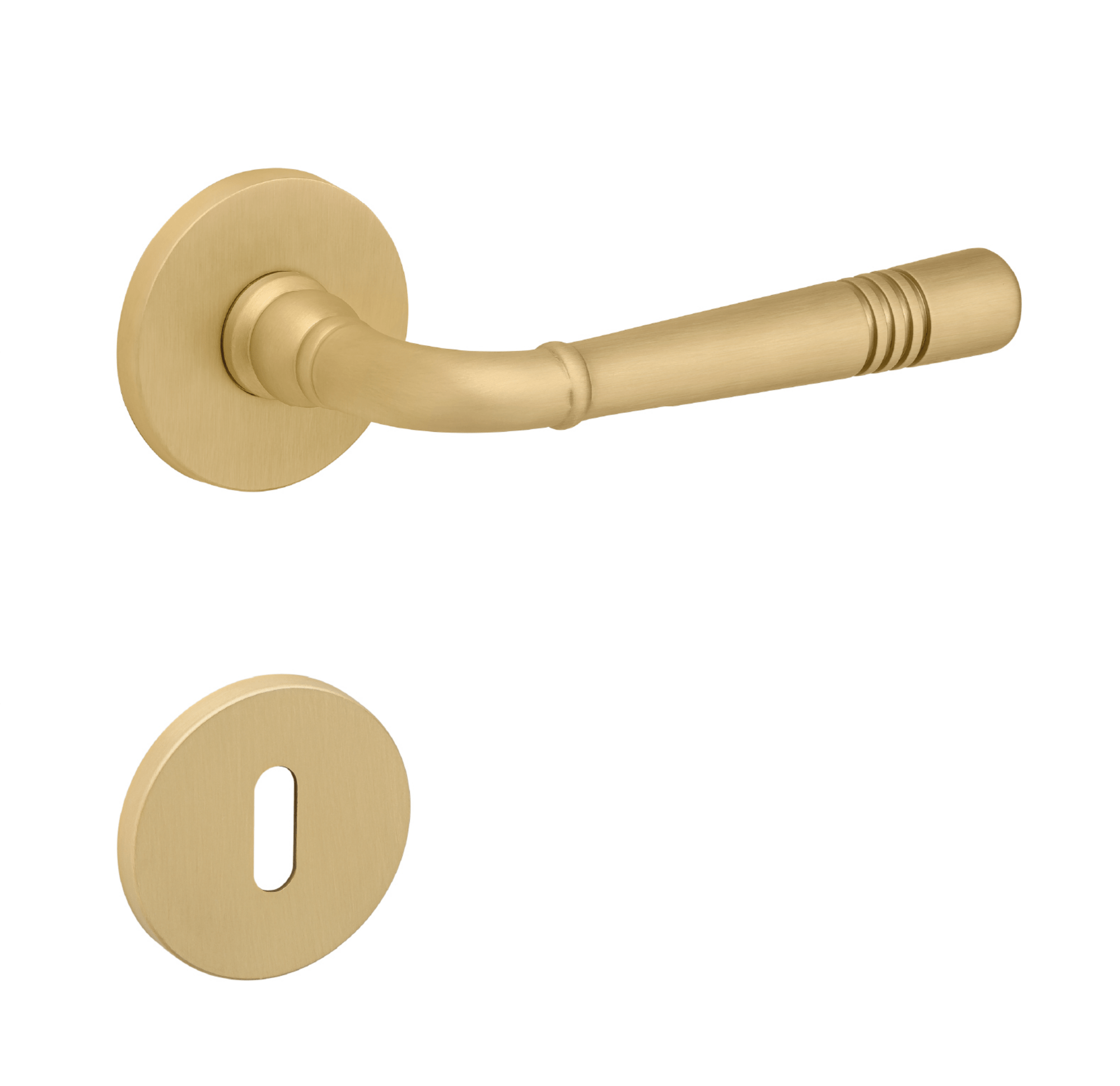 Rozetová klika na interiérové ​​dveře s kulatou rozetou je vyrobena z materiálů vysoké kvality - mosaz a je povrchově upravena. Rozeta má průměr 52 mm a tloušťku pouze 5 mm.